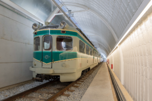 Uno de los trenes históricos en la Galería de exposición de FGC, Fotografía: FGC